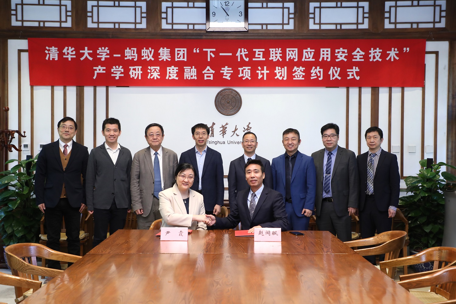 当天上午,清华大学副校长曾嵘、吴建平院士及蚂蚁集团首席技术官倪行军出席见证。清华大学计算机系主任尹霞、蚂蚁集团大安全事业群总裁赵闻飙代表签约。清华大学吴建平院士团队、蚂蚁安全实验室科研团队代表参会。