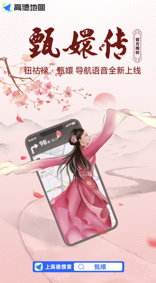 近日,高德地图宣布与经典剧集《甄嬛传》官方达成合作,共同推出了高德地图钮祜禄·甄嬛导航语音包。即日起用户在高德地图 APP 中搜索「甄嬛」就能下载体验,出门导航的同时,还能够听到基于《甄嬛传》经典台词演绎而来的语音指引,梦回碎玉轩。