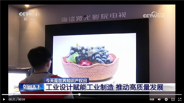 4 月 26 日, 第 23 个世界知识产权日, CCTV-1《朝闻天下》专题聚焦海信激光电视等科技智能产品, 以创新技术和工业设计赋能工业制造, 推动工业制造业高质量发展。