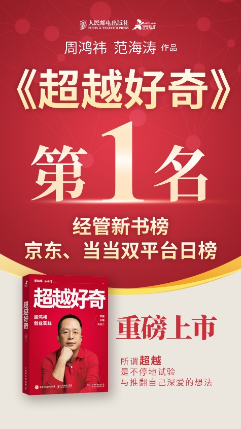 5 月 4 日,360 集团创始人周鸿祎自传《超越好奇》上架,该书被誉为「创业圣经」,当天即登上京东、当当双平台经管新书日榜第一。周鸿祎本人也做客樊登直播间,推荐这本写给初入职场者和创业者的「避坑指南」。
