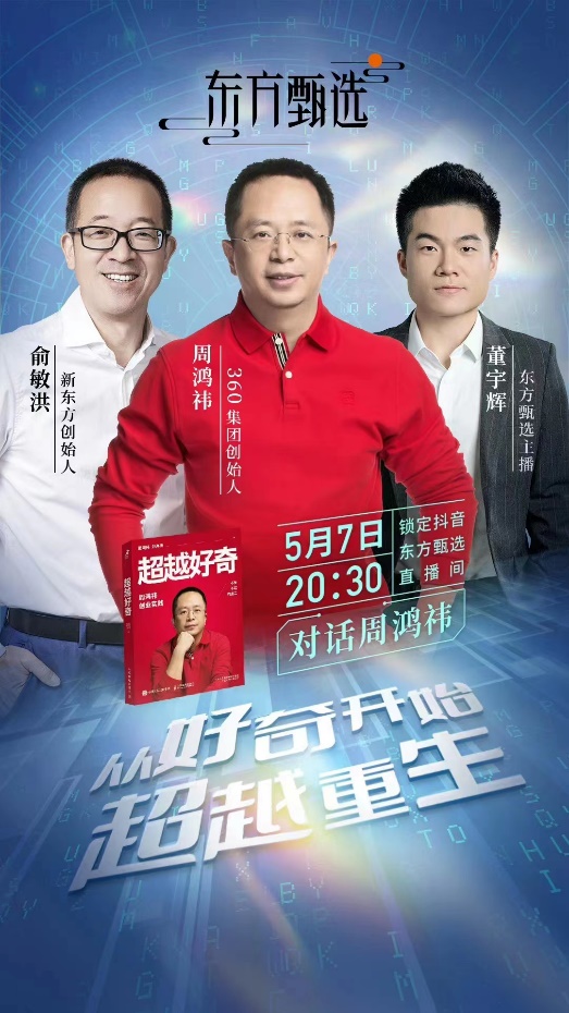 据了解,5 月 7 日晚周鸿祎还将做客俞敏洪和东方甄选直播间,就「好奇驱动人生」展开对谈。直播预告透露,周鸿祎另一本新书《数字安全网络战》也将在当晚亮相直播间。有书评称,该书揭秘了大量网络战的细节和幕后故事,是首次对数字安全时代的网络战进行系统性阐述。