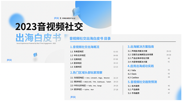 技术解决方案、安全合规、本地化运营........ 更多实时音视频社交出海指南尽在《2023 音视频社交出海白皮书》!