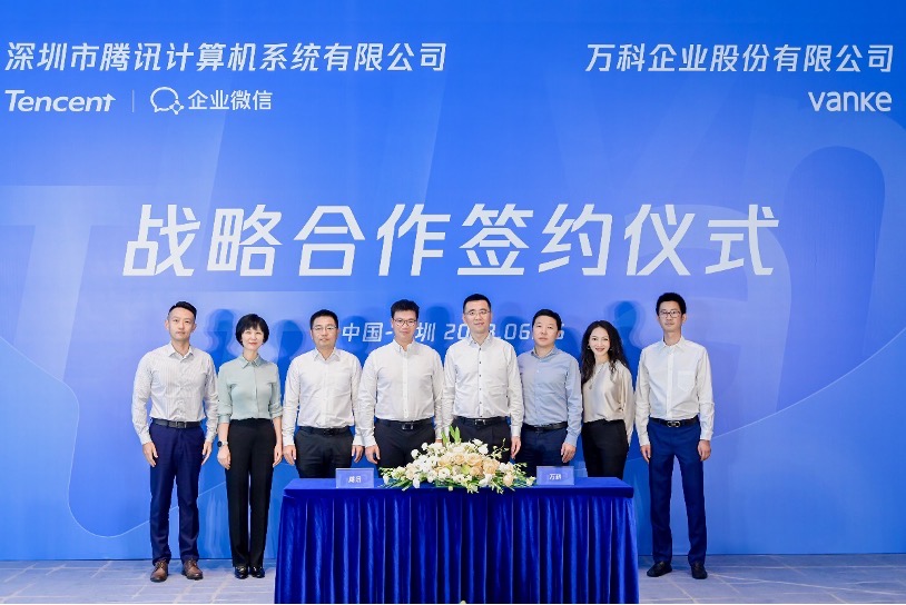 6 月 6 日,腾讯公司与万科集团在深圳共同签署战略合作协议,双方将整合各自优势资源进行全方位战略合作,以企业微信为起点共创数字管理新范式。两家总部位于深圳的世界 500 强企业「牵手」,怀揣更好服务客户的初心,将在多领域展开合作,共同探索中国企业管理与发展的新方法、新路径。