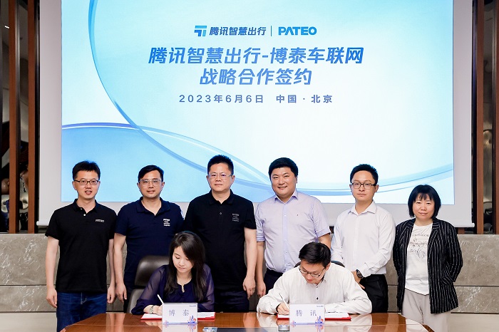2023 年 6 月 6 日,腾讯智慧出行与博泰车联网签署战略合作协议,双方将围绕云平台、智能座舱、智驾地图、智能营销、出海等领域开放合作,融合各自在产品、技术、资源等方面的优势,共同为汽车行业客户提供领先的解决方案,促进行业创新发展。腾讯智慧出行副总裁李博、博泰车联网创始人兼 CEO 应宜伦等人出席见证此次签约仪式。