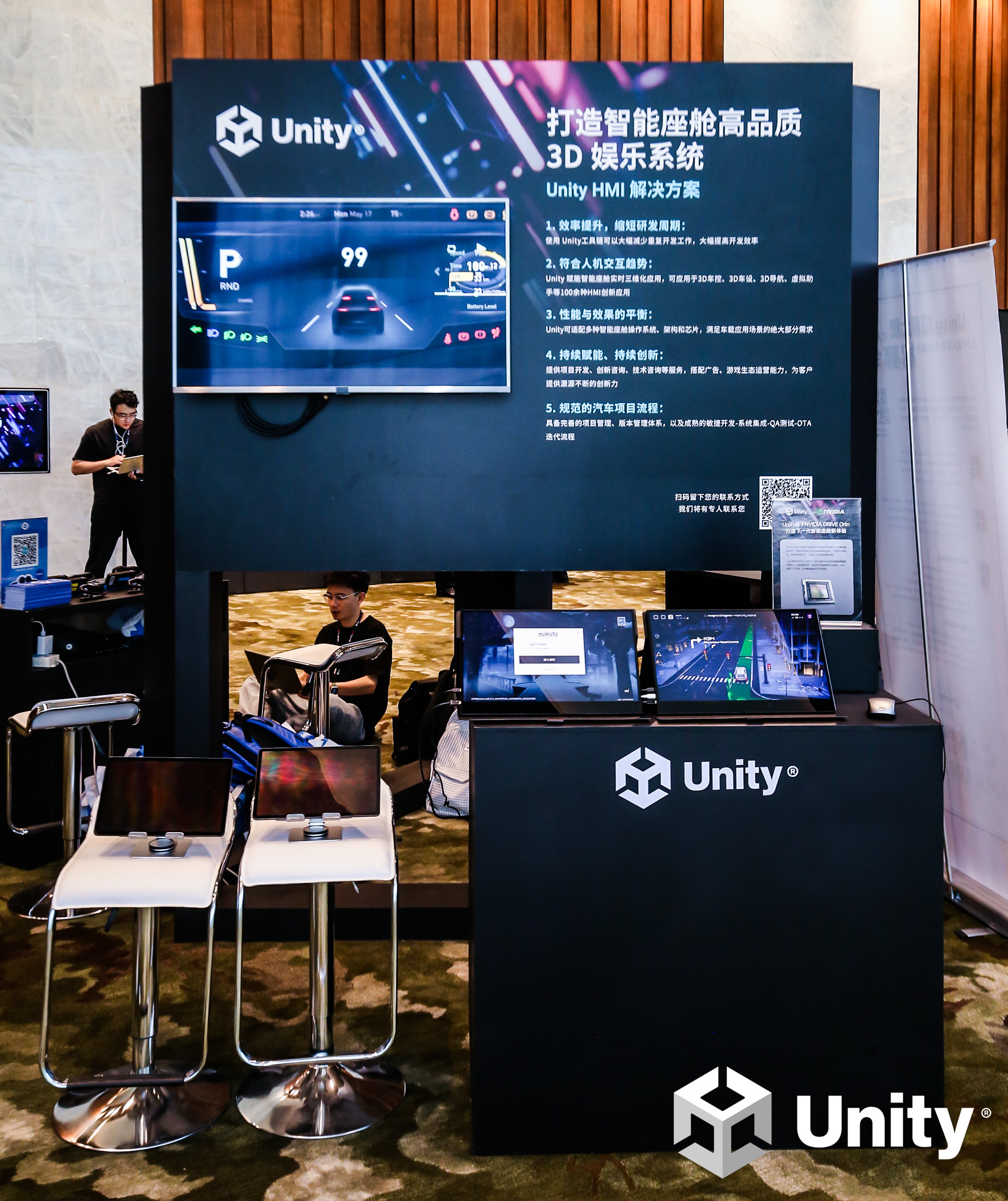 在场外的体验区域,Unity 也展示了首次在 NVIDIA DRIVE Orin 计算平台上运行的 Unity 汽车智能座舱解决方案 3.0。Unity 编辑器与 NVIDIA DRIVE Orin 的强强联合,可实现强大的一芯多屏能力,支持同时流畅运行车道级的 3D 导航与原神游戏,并无碍展现未来高精度的智能座舱交互体验。