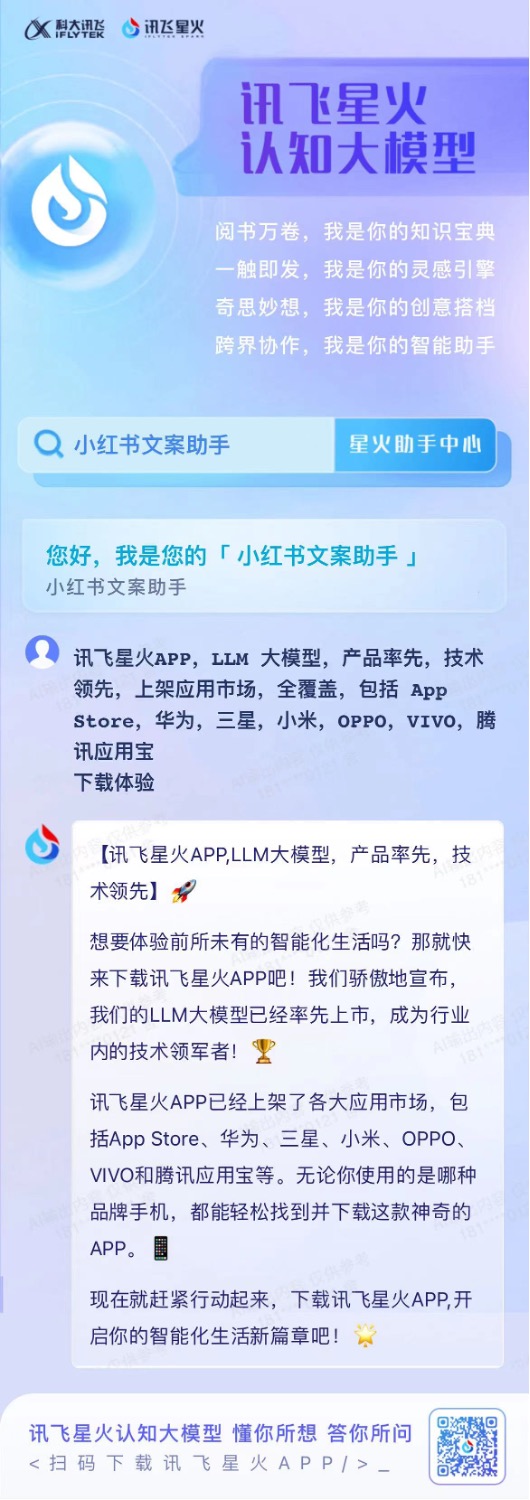 截止今天,讯飞星火 APP 成功上架了 AppStore、华为、小米、OPPO、vivo、腾讯应用宝等主要应用商城。作为第一家在安卓主流应用市场全面覆盖的国产大模型应用,讯飞星火也将成为用户的首选智能助手。