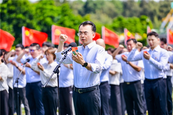 用宣誓表达初心, 用行动践行使命。7 月 1 日, 一场震撼人心的千人誓师大会在福州网龙长乐基地举行, 一千多名从事教育相关业务的网龙网络公司员工在董事长刘德建博士的带领下, 在国旗下庄严宣誓:「为教育事业, 奉献全部的智慧和力量!」