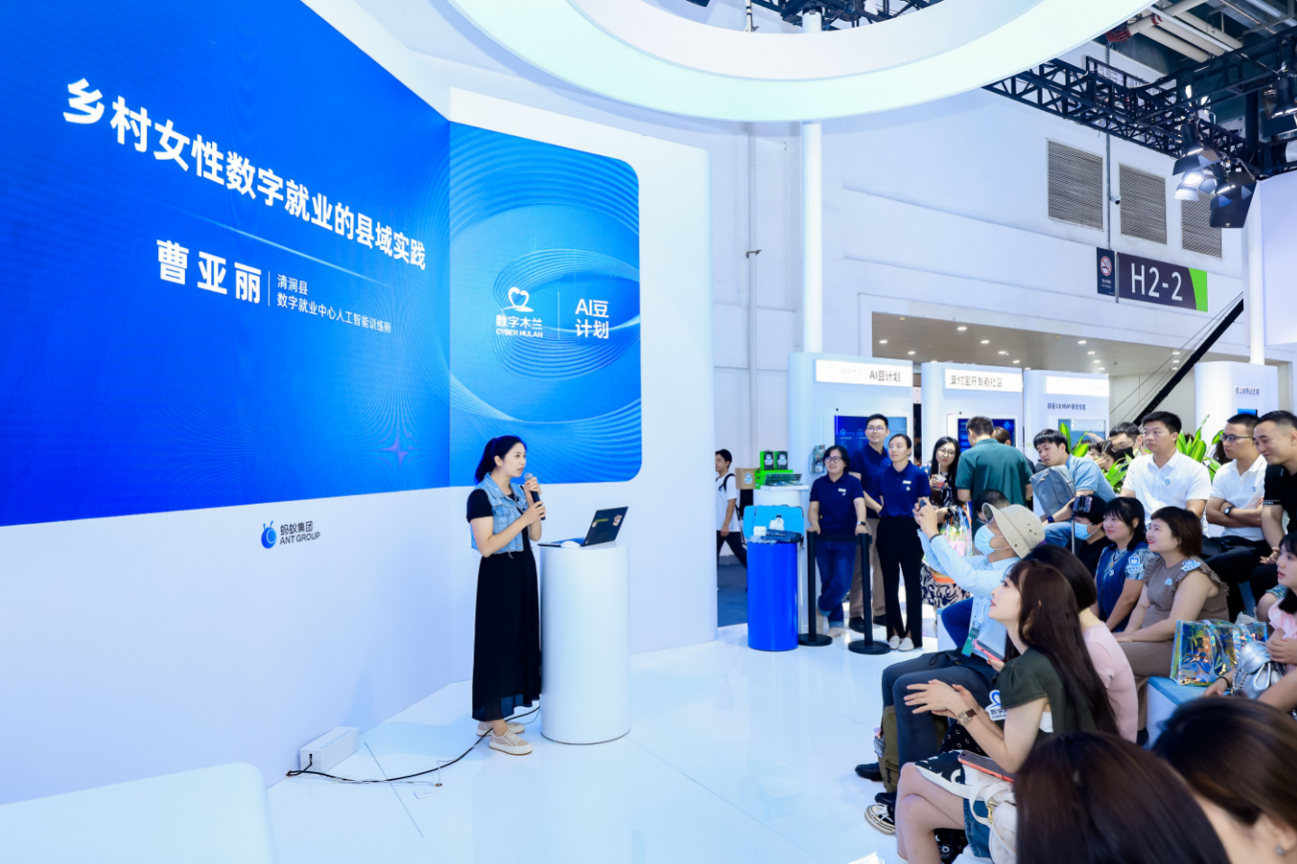 为发挥数字技术和平台优势,助力乡村留守女性、返乡青年等在地就业,2019 年,蚂蚁集团、蚂蚁公益基金会联合中国妇女发展基金会等共同发起「数字木兰|AI 豆计划」,通过订单引入、技能培训、社会企业孵化等,助力中西部欠发达县域女性就业和产业发展。