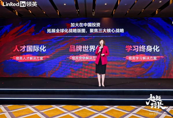 2023年7月20日,上海——领英中国今日成功举办 Forward 超越增长 2023 全球化峰会,新任领英中国区总经理王茜女士出席,并宣布领英学习解决方案正式落地中国,她表示领英将持续加码中国企业全球化业务,深耕中国市场。