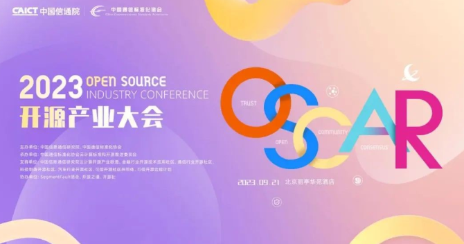 2023 年 9 月 21 日,由中国信息通信研究院和中国通信标准化协会主办的「2023 OSCAR 开源产业大会」将在北京举办。