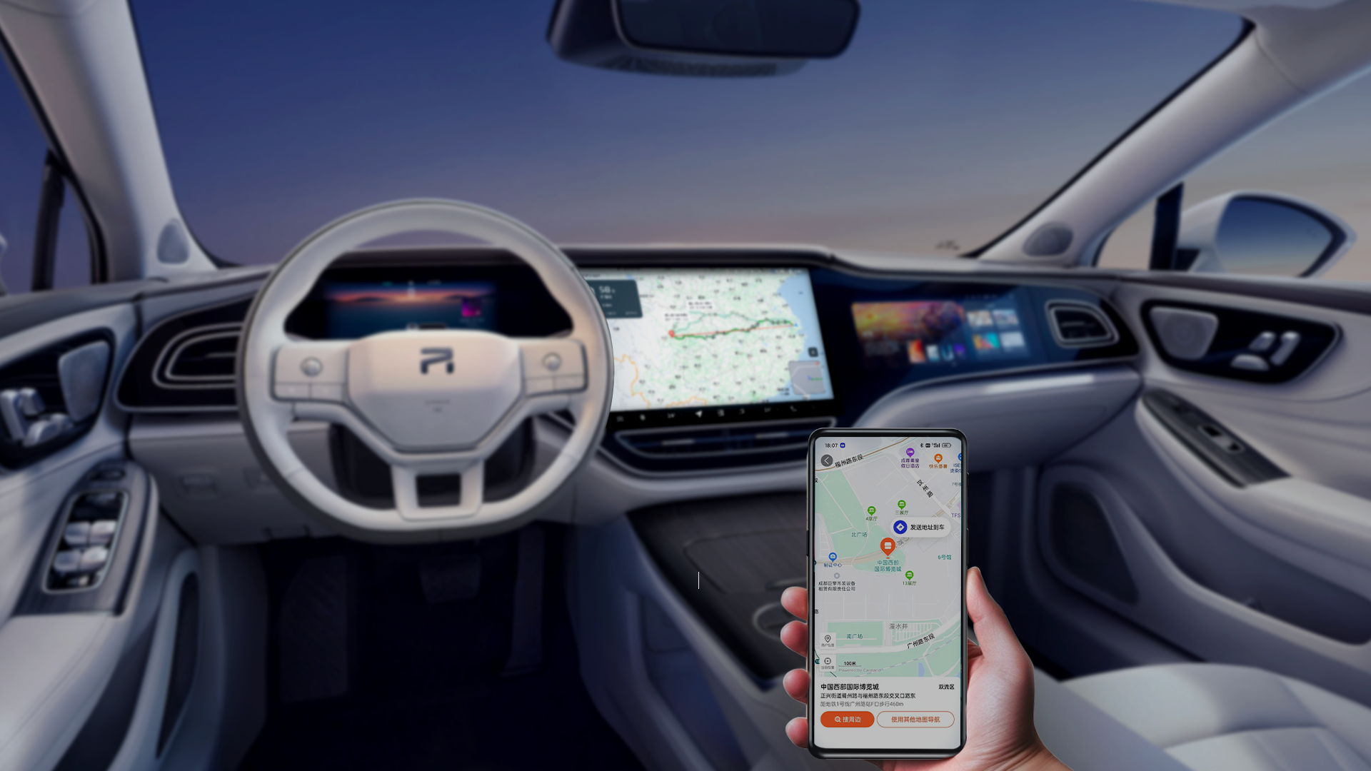 发布会现场,飞凡汽车用户发展总经理刘晨在车内演示了车机与手机如何无缝对接。「用户手机接收地址只用一甩就能同步至车机导航。」刘晨将手机放在车机中控大屏前,轻轻一甩,手机上的地图信息直接显示在了车机屏幕上。