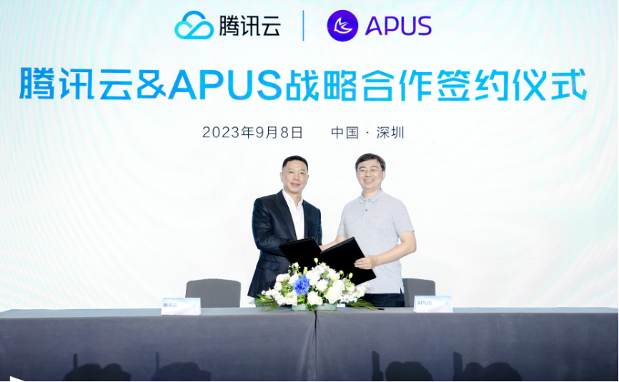 9 月 7—8 日,2023 腾讯全球数字生态大会在深圳盛大举行,AI 大模型企业 APUS 出席大会,APUS 副总裁邓小波与腾讯现场签约战略合作,双方将集中各自优势,在 ICT 基础设施、大模型生态建设等领域开展广泛、深入合作。