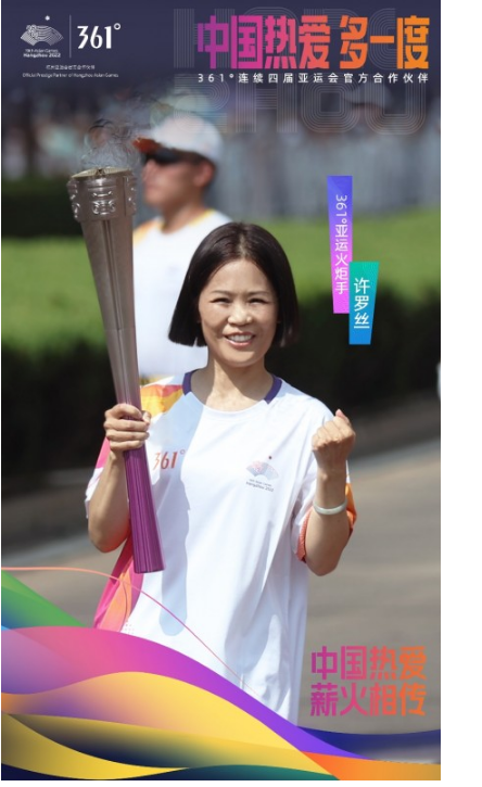 穿上自己做的火炬手制服传递薪火的那一刻,许罗丝也真切理解了亚运对于 361°的意义。连续四届服务亚运,361°不仅与亚运会建立了紧密的纽带关系,在此过程中,产品、技术研发等多层面持续升级,更是实现品牌与亚运的共同成长。另外借助亚运会这一国际舞台,也让更多人看到 361°品牌,看到 361°的产品及专业运动实力,作为公司的一员,许罗丝感到无比自豪。