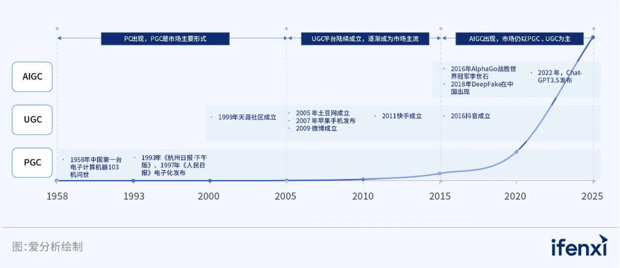 图 1:PGC、UGC 到 AIGC 标志性发展事件