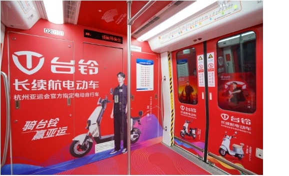 2023 年 9 月 23 日,第 19 届亚运会在杭州开幕。与此同时,杭州亚运会官方指定电动自行车——台铃,在杭州上线了「我想开了」亚运地铁专列。并在全网发起「骑台铃 赢亚运」的主题活动。