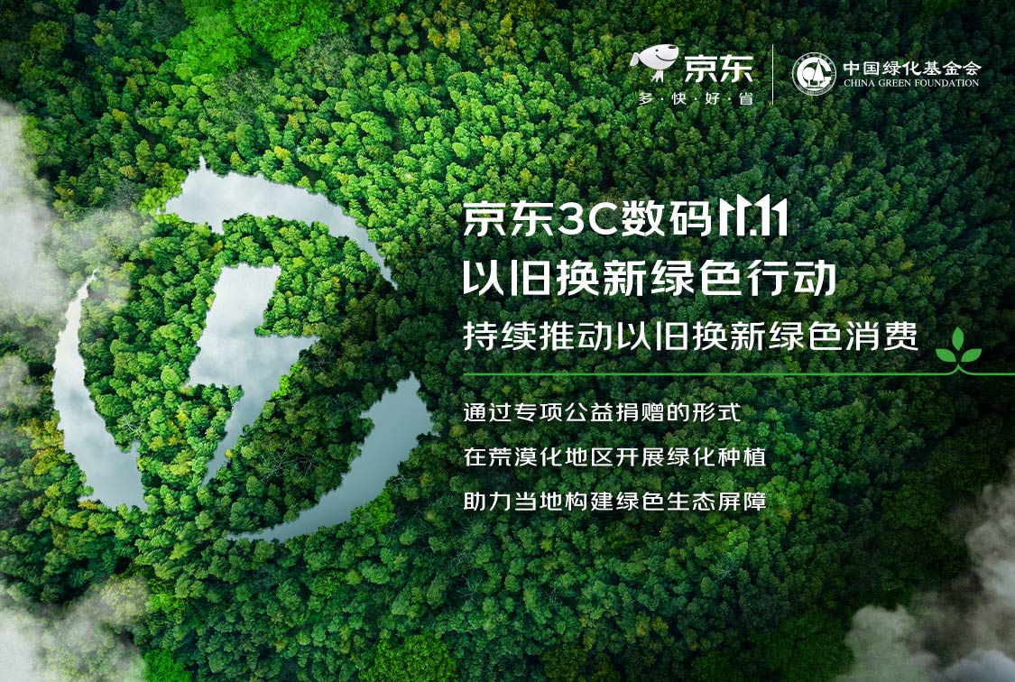 为汇聚更多环保力量,践行企业社会责任,2023 年 11.11 期间,京东 3C 数码将联合中国绿化基金会开展「以旧换新绿色行动」,持续推动以旧换新绿色消费。本次「以旧换新绿色行动」将通过专项公益捐赠,由中国绿化基金会在荒漠化地区开展绿化种植,助力当地构建绿色生态屏障。作为国家林业和草原局主管的全国性公募基金会,中国绿化基金会将根据种植地区的土壤、自然条件制定造林计划,确保种植公益项目顺利落地,以实际行动守护绿色家园。