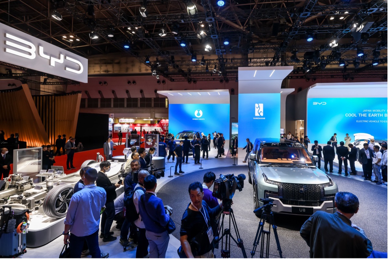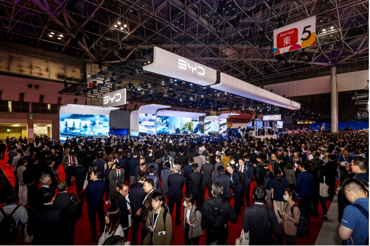 10 月 25 日,第 47 届东京车展(2023 年更名为「日本移动出行展」)在东京国际展览中心正式开幕,比亚迪携五款新能源车型及核心技术亮相本届车展,成为历史上首家参加该车展的中国车企,向世界展示中国品牌力量。
