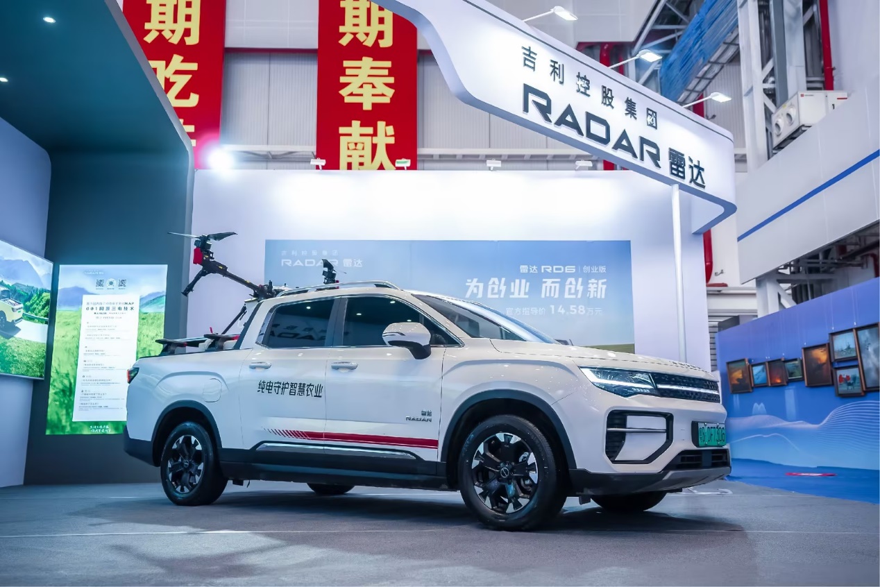 吉利雷达作为唯一纯电皮卡品牌,携全球首个「车+植保无人机」智慧场景解决方案受邀参会。