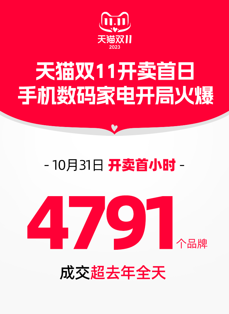 天猫双 11 开卖首日,手机数码家电品牌增长强劲,延续预售的火爆势头。