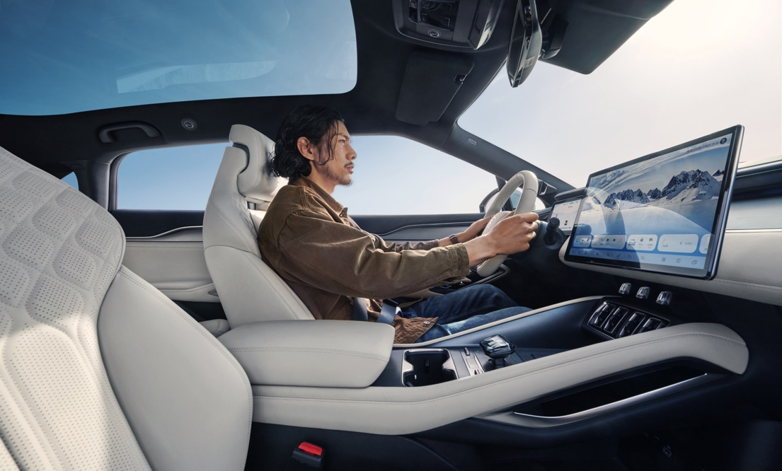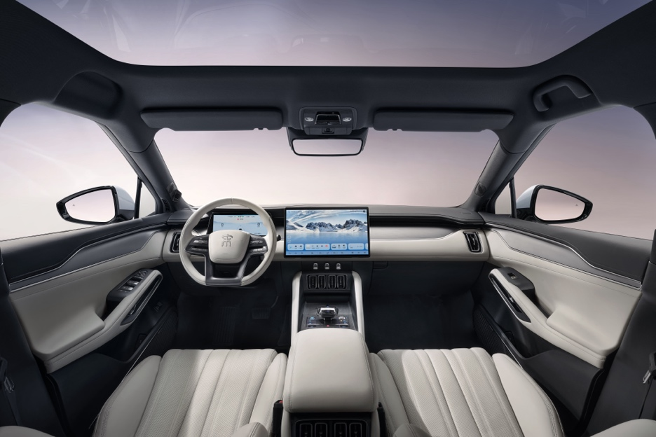 内饰设计采用「动势交错美学」,以中国结为灵感,构建出层叠、轻盈、环绕的空间秩序;三种内饰配色从自然汲取灵感:白色沙滩、丹霞晨光和旷野星空,带给用户截然不同的感官体验;NAPPA 真皮、豪华麂皮等多种高级材质的应用,以及高达 85% 的包覆面积,让优雅和质感展露于每一处细节;大五座空间拥有 2930mm 的超长轴距,达到了 B 级车天花板,配备的一体式运动座椅,兼具通风、加热、按摩、腿托等多项舒适功能,让您拥有更愉悦的驾乘体验。