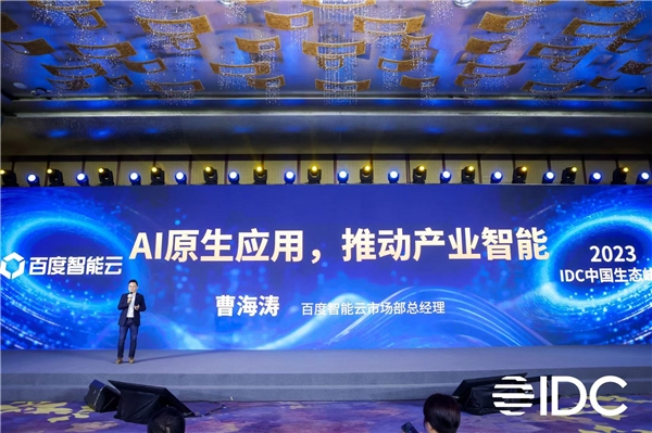 百度智能云市场部总经理曹海涛受邀参会,并发表题为「AI 原生应用,推动产业智能」的演讲。他强调,生成式 AI 正在从「探索能力边界」向「推动应用落地」过渡。面向客户典型需求所提供的服务,包括高性价比的算力、易用的模型平台、丰富的工具链、低门槛的开发平台,最终都是为了帮企业做好充分准备,迎接 AI 原生应用爆发的时代。