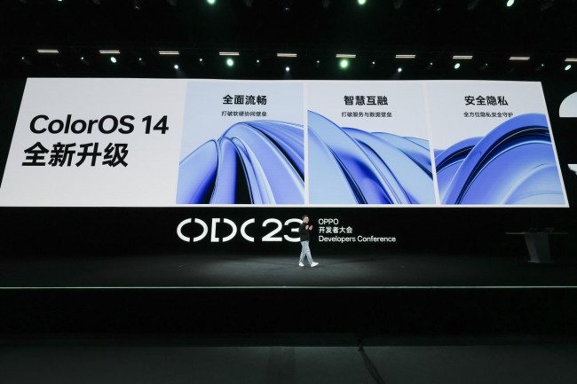 2023 年 11 月 16 日,中国,上海——在 2023 OPPO 开发者大会(ODC23)上,全新一代 ColorOS 14 正式发布。作为 ColorOS 十年之作,ColorOS 14 在自研潘塔纳尔系统、AndesGPT、ColorOS 超算平台三大技术加持下,进一步打破数据与服务的壁垒,带来以人为中心的智慧流畅新体验。