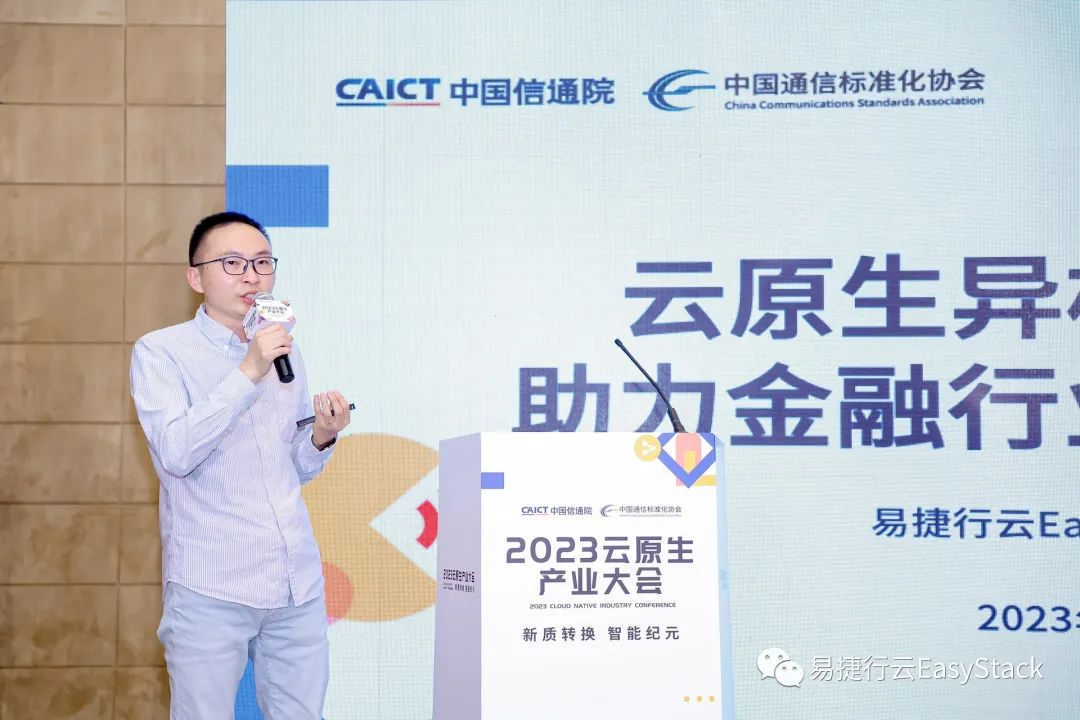 12 月 1 日,由中国信息通信研究院、中国通信标准化协会主办的「新质转换,智能纪元」2023 云原生产业大会在北京隆重举行,此次大会汇聚了国内外云原生领域的领军智库、政府领导、院士专家、企业高层等重量级嘉宾。易捷行云 EasyStack 受邀参展,并在云原生加速算力产业发展分论坛上进行了题为《云原生异构 AI 算力池助力金融行业大模型建设》的主题演讲,引起了与会人士的高度关注。