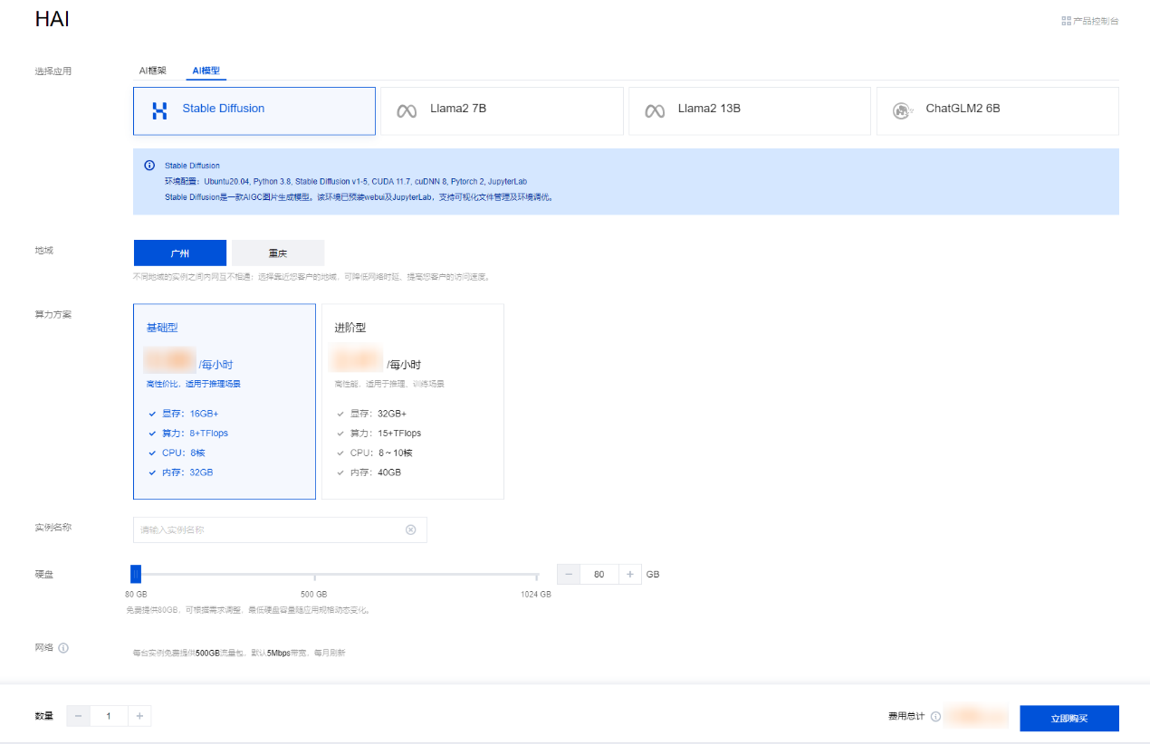 (HAI 购买界面,可以自动匹配云资源)