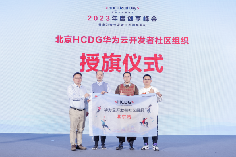 ▲ 北京 HCDG(华为云开发者社区)授旗现场