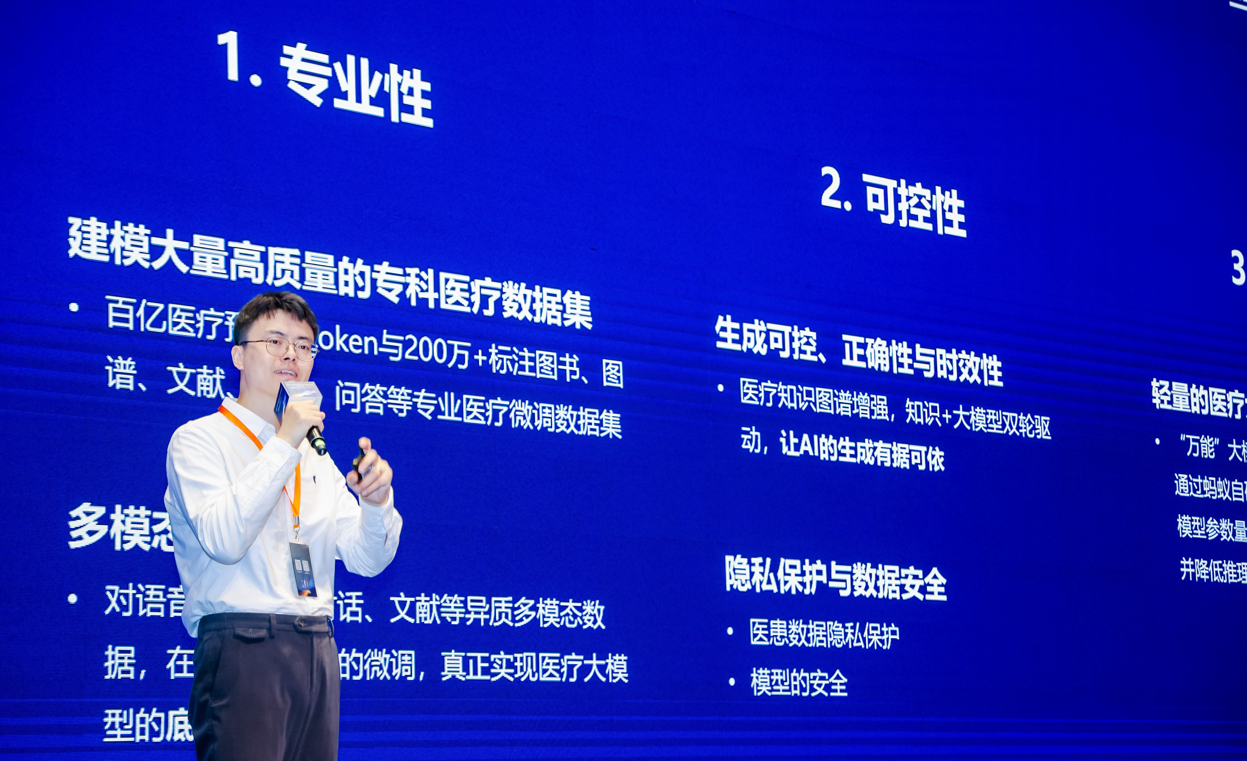 图说:蚂蚁集团商业机器智能部总经理顾进杰介绍国内首个医疗专科推理数据集