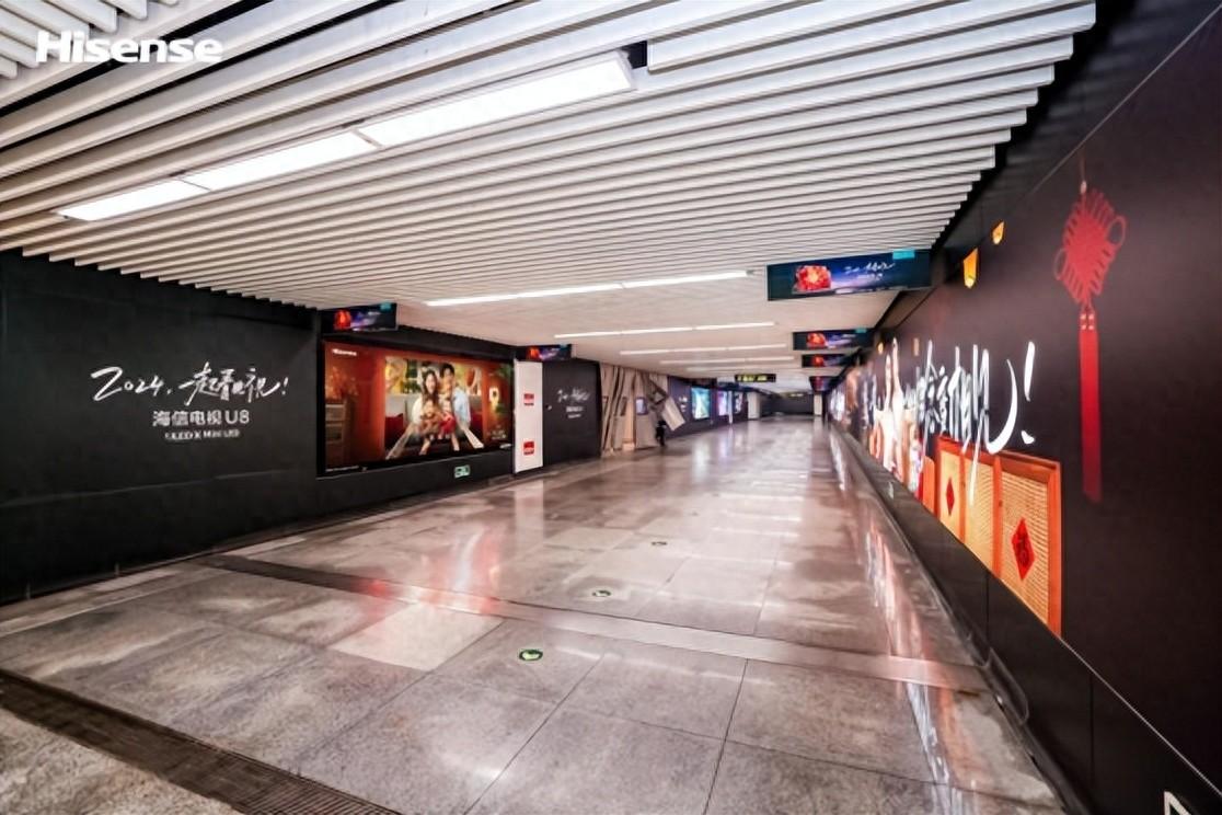 在 2024 年伊始,海信电视在青岛五四广场地铁站的万象长廊,打造了一场「最温暖」的地铁影像展,向大家传递了两种精彩:一种是「屏幕外」的精彩,一幅幅与家人、朋友、爱人一起看电视的美好瞬间,让地铁站匆匆来往的人群忍不住驻足;另一种是「屏幕内」的精彩,海信电视 U8 通过参考级影像,将电影、游戏、球赛的精彩画面完美呈现,为每一种陪伴带来了最佳体验。