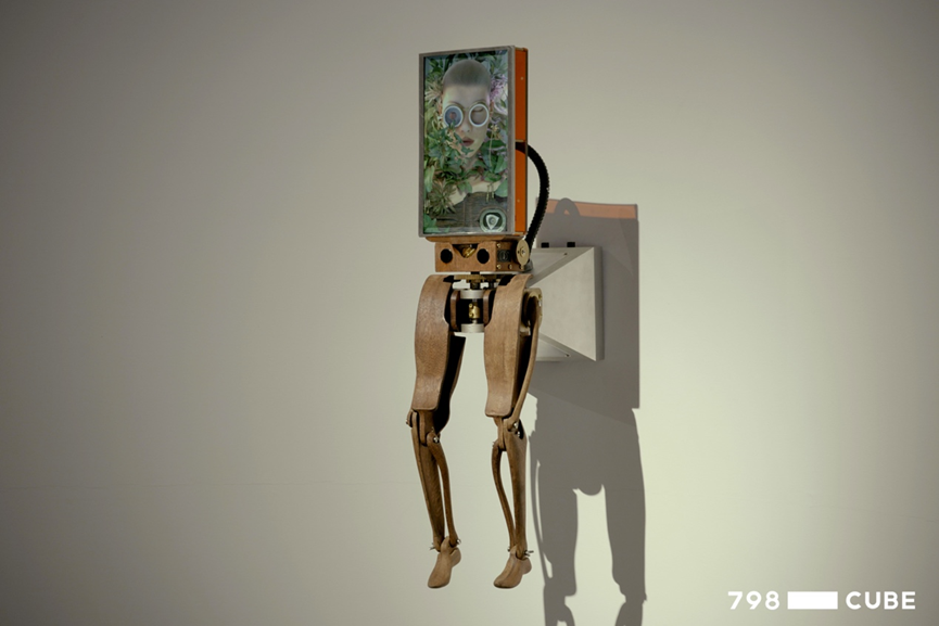 牛艳寒,《一个惶恐不安的时刻》,「人机合一:机器人艺术时代」,展览现场,798CUBE,2024。