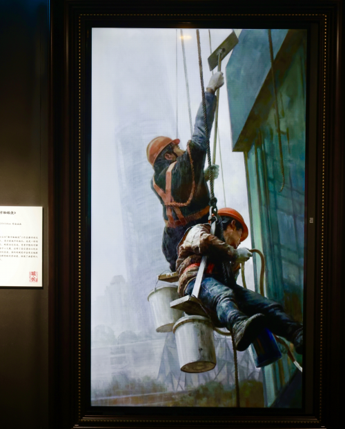 那么谁才是城市发展的缔造者? 巡展过程走进了上海交通大学, 在方寸的车厢之间, 交大学生小林找到了属于了自己的答案。她说到, 此次画展以「城市成长」为主题, 在众多画作中, 人物为主体的画作让她印象深刻, 这其中既有环卫工人为对象的肖像, 也有城市「蜘蛛人」的作品, 让人感受到小人物也是城市多元建设者的其中一员, 以画作的形式展示, 让人觉得很有冲击力。