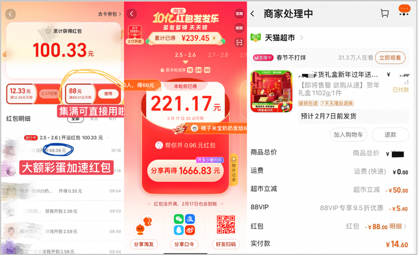 不到半小时拆满 88 元红包!淘宝 10 亿新春红包迎来首日 1 亿用户火热参与