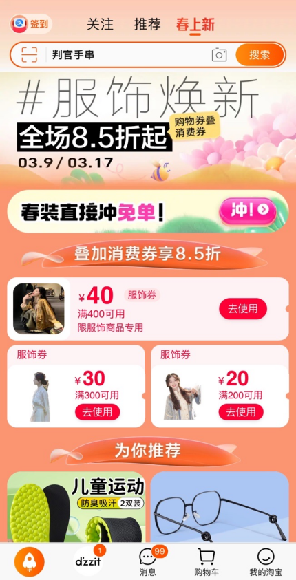 利好服饰商家!淘宝首页首设专属标签开启春装大促