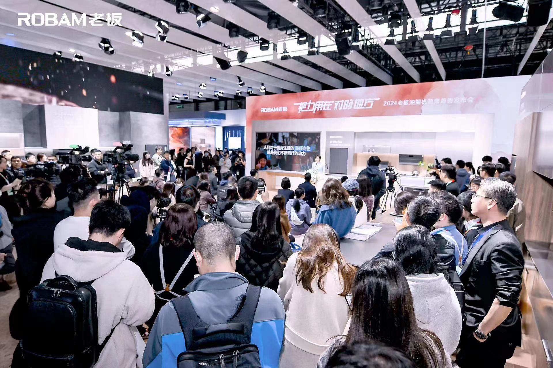 展会现场老板电器也带来了一系列具有创新突破性的科技新品,举办了“把力用在对的地方——2024老板电器油烟机超薄趋势发布会”。从1988年老板电器与中国航天804所研发的第一台油烟机开始,老板电始终是油烟机领域的风向标,持续引领行业一次又一次创新变革的方向。2008年大吸力油烟机的问世,带给了消费者更加舒适洁净的家庭厨房环境;2015年发明中央油烟机,创造了“一栋楼只用一台吸油烟机”的行业神话;2022年超薄油烟机的问世,再次定义了新一代烟机的形态。本次AWE上,老板电器所带来的“双超薄U系列油烟机”,更是引领了烟机品类轻薄化的发展趋势。其“风源+风口”双重下置,创新双近吸设计,使吸烟口和动力源同时靠近烟源,在有效解决中式烹饪重油烟的同时,更加轻薄美观,充分释放厨房空间,引领“下一代超薄油烟机”时代到来。