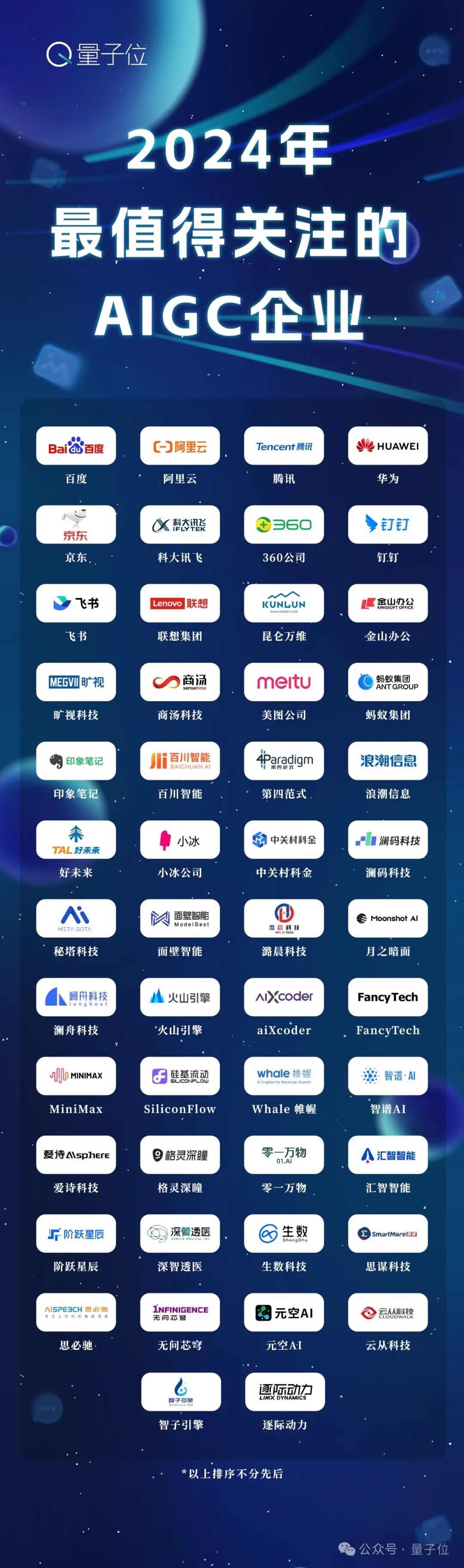 一同亮相的还有2024 年值得关注 AIGC 企业&产品榜单。它们为理解当下中国 AIGC 应用市场,提供了一个客观视角。