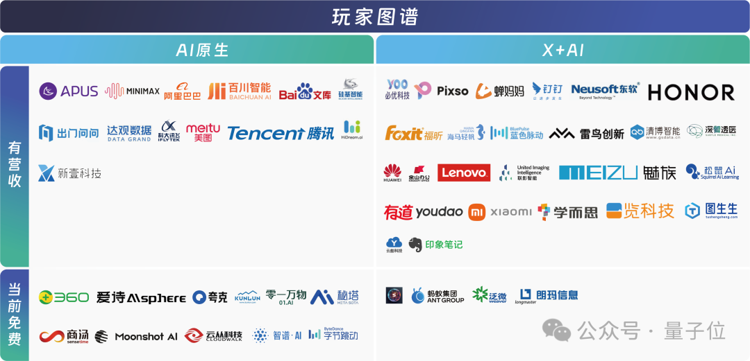 再交叉来看,AI 原生产品又以自建和自研大模型为主;X+AI 产品在基于自建垂直大模型以外,以 API 接入为特色。