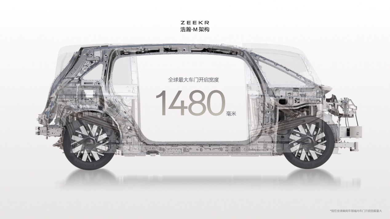 颠覆过往,浩瀚-M 架构创造了汽车行业中第一个「贯通式电动对开门」,让之前只在概念车极氪 M-Vision 上出现的开门方式,第一次量产上车。
