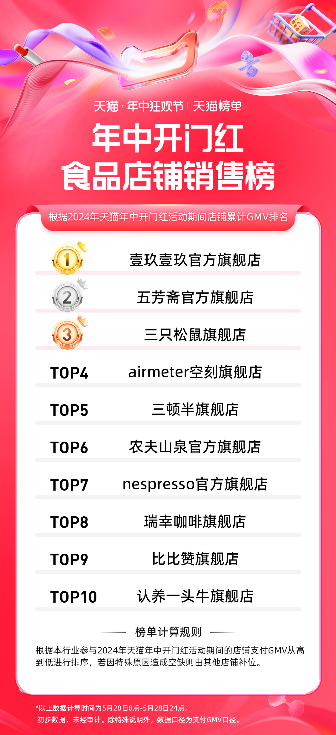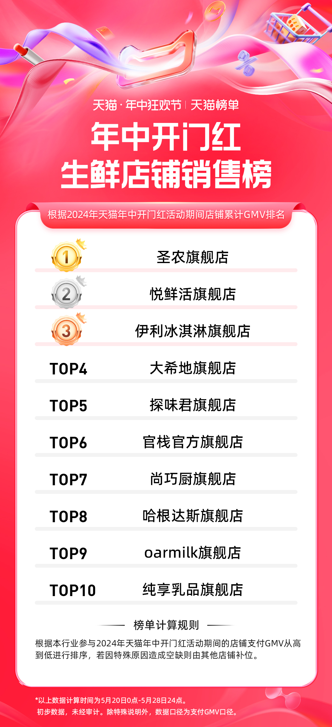 14、天猫 618 第一波生鲜行业店铺排行榜: