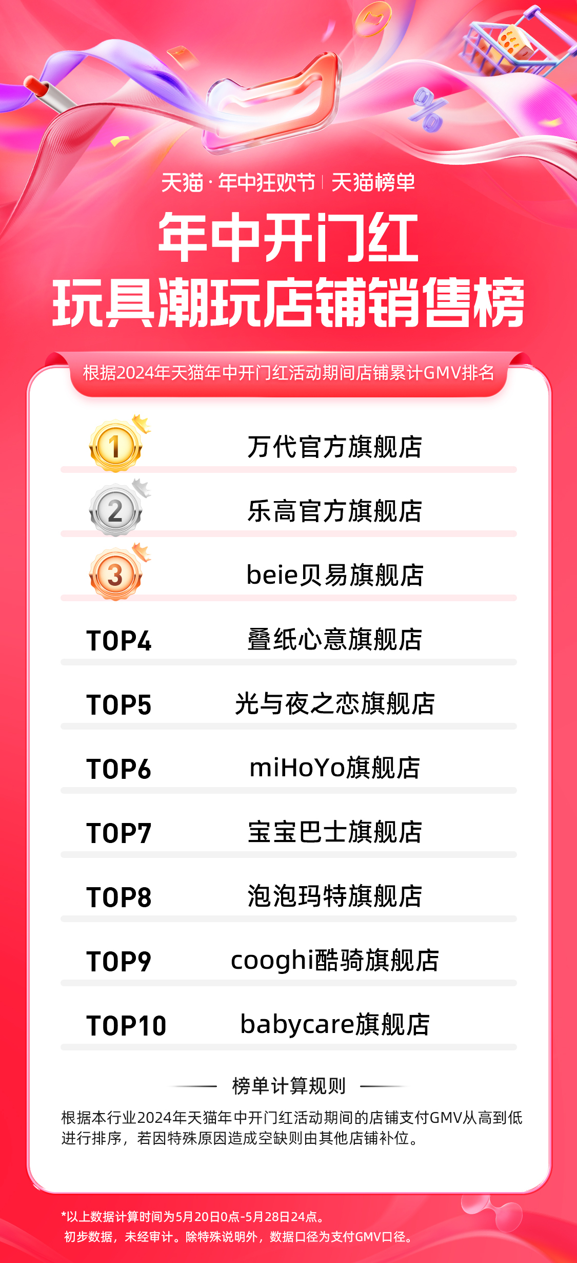 9、天猫 618 第一波玩具潮玩店铺排行榜: