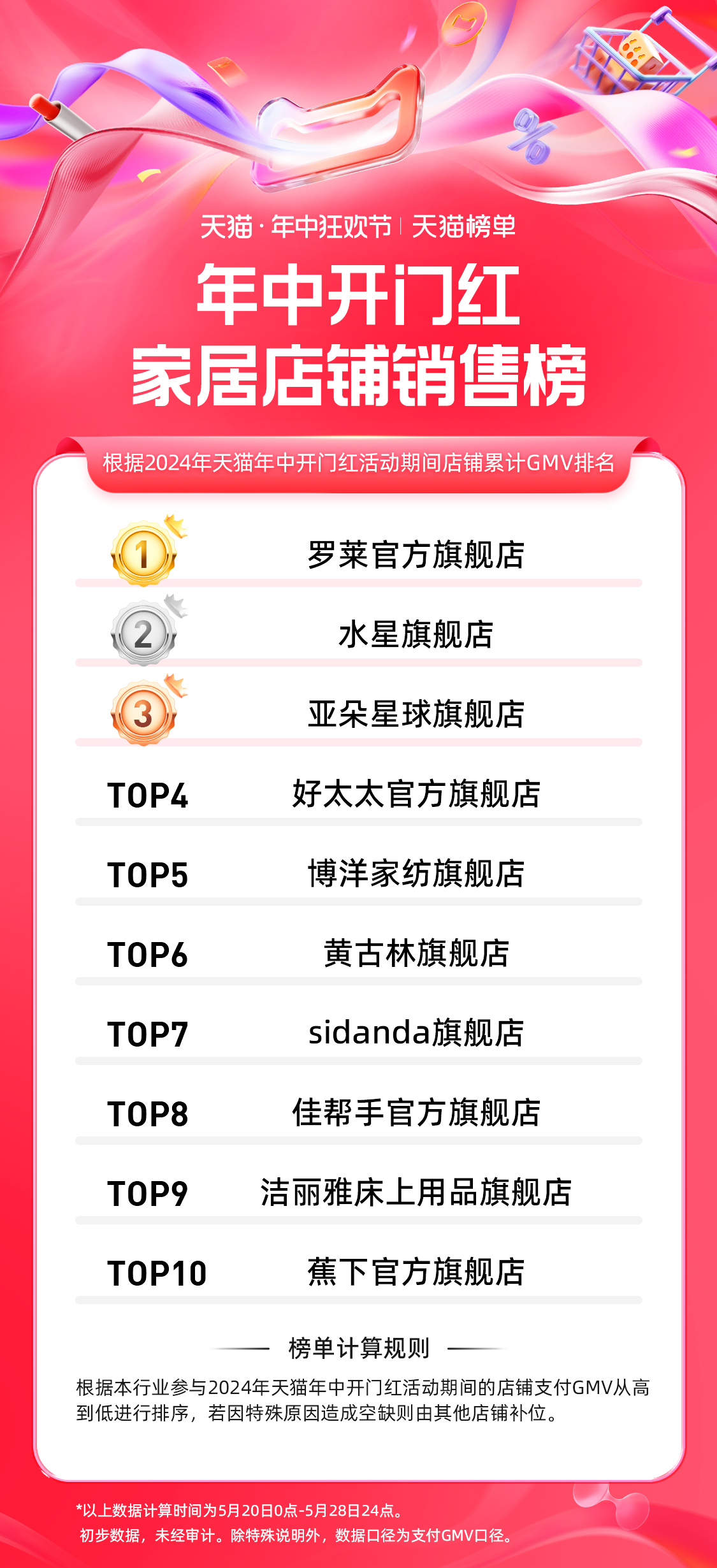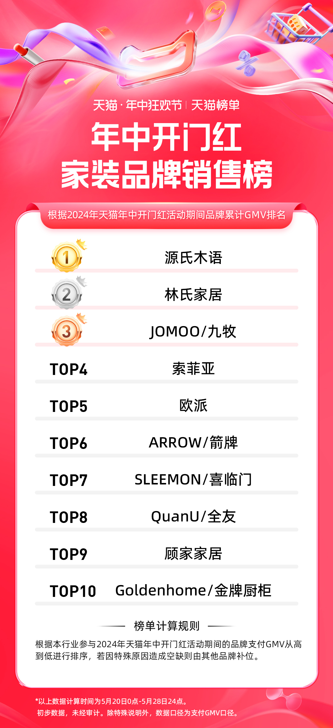 5、天猫 618 第一波家居品牌排行榜: