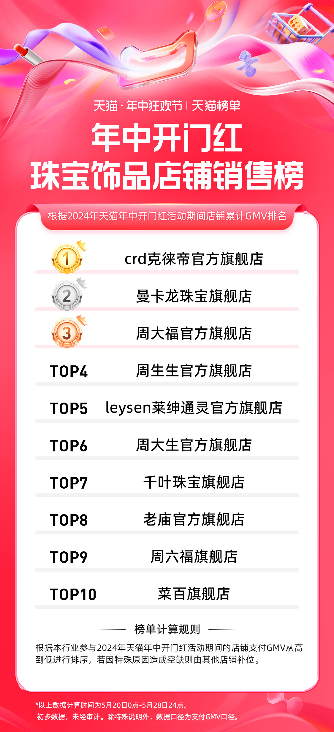 17、天猫 618 第一波珠宝饰品店铺排行榜: