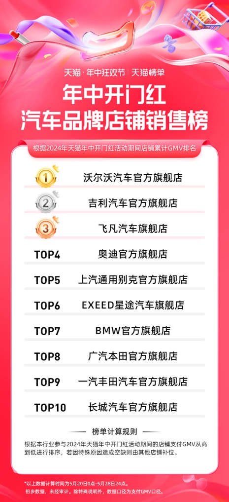 15、天猫 618 第一波汽车品牌店铺排行榜: