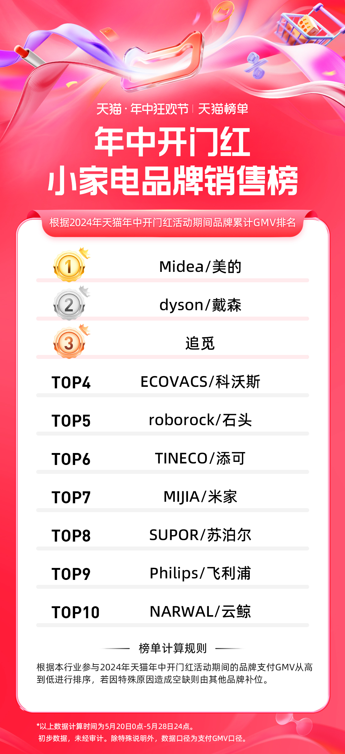 7、天猫 618 第一波小家电品牌排行榜: