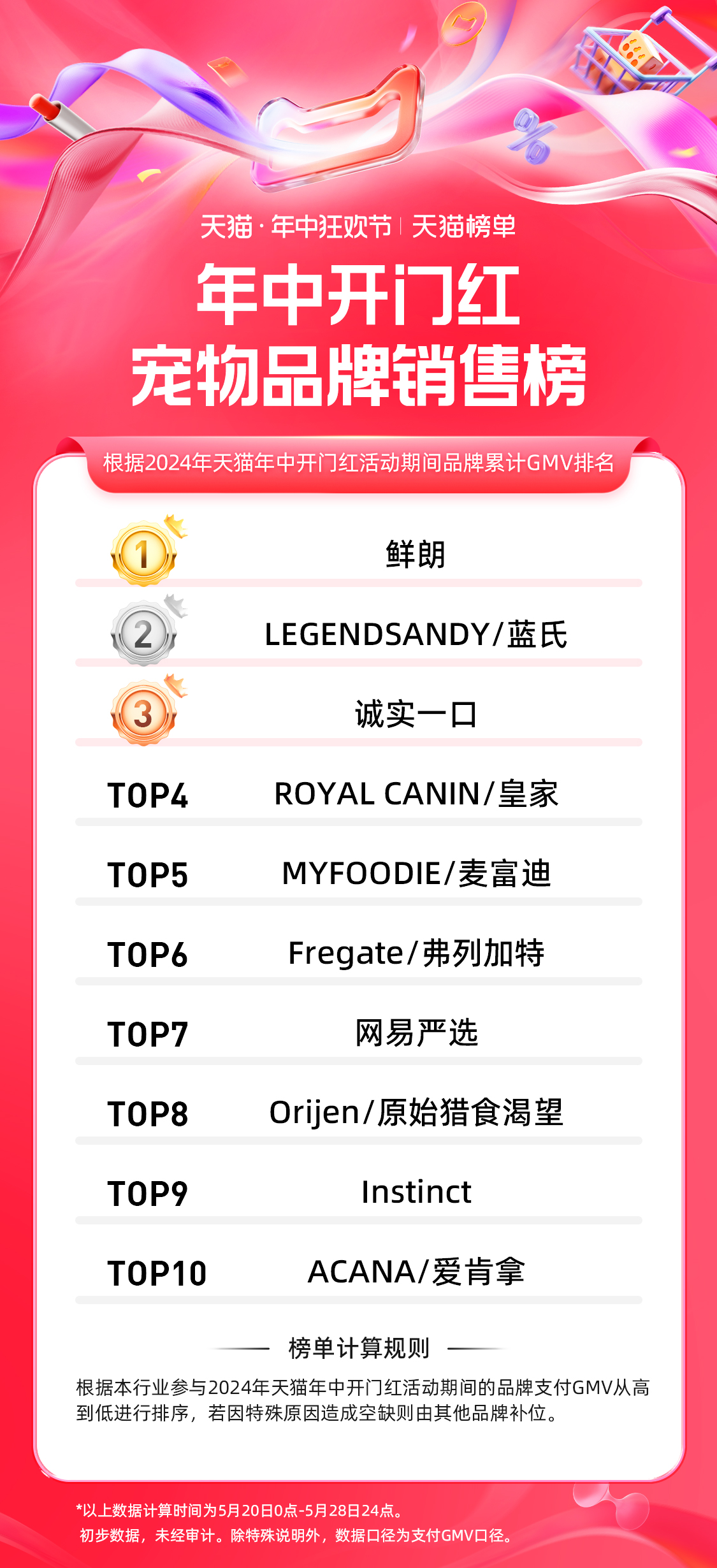 12、天猫 618 第一波宠物行业品牌排行榜: