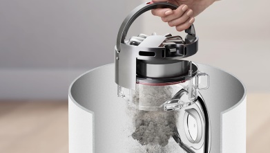 戴森吸尘机器人的尘桶采用一键式弹射设计,清洁完毕后轻松取下尘桶,只需按下一键按钮,就能将灰尘和碎屑弹射到垃圾桶深处,让双手保持干净,让清洁的收尾工作卫生又轻松。