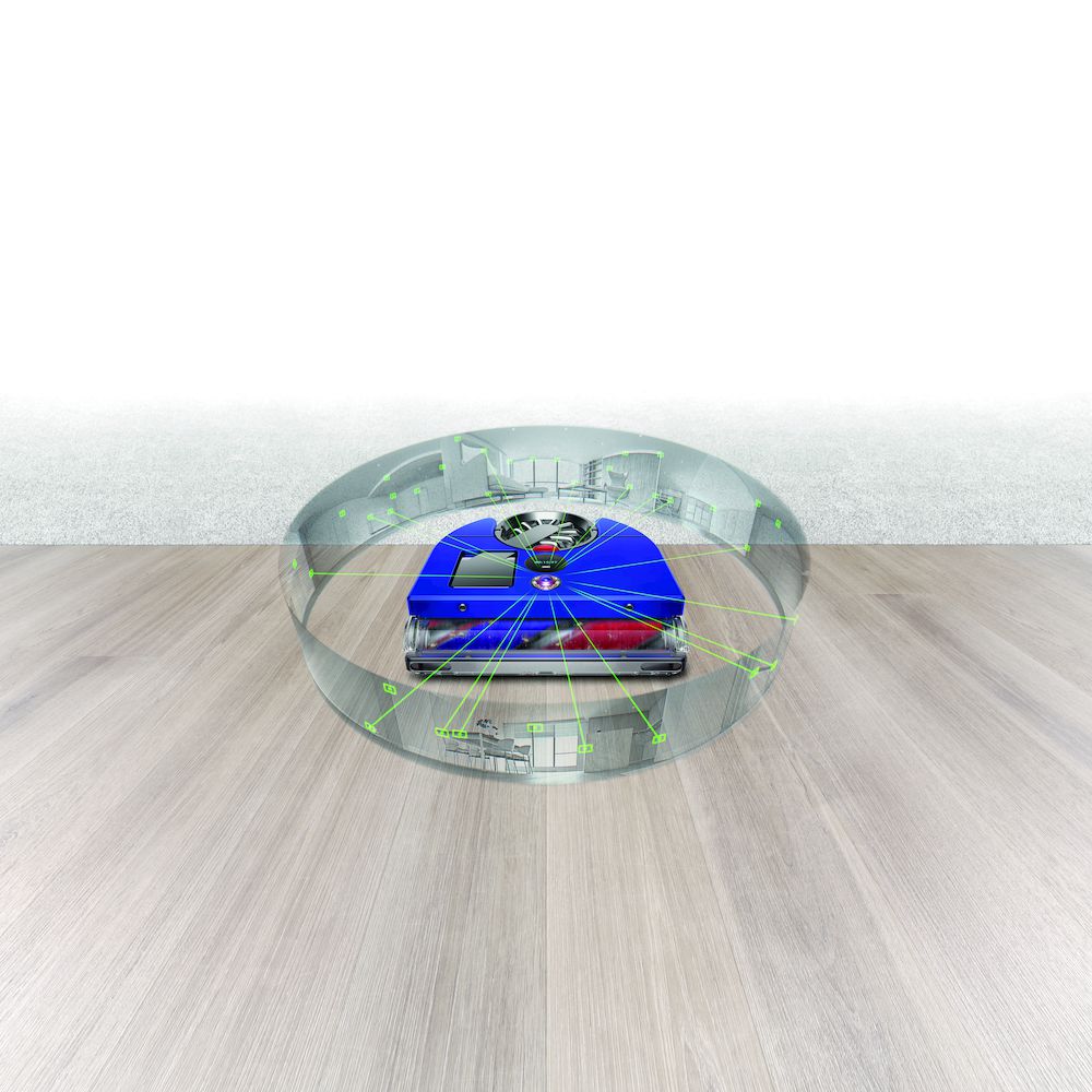 戴森吸尘机器人配备的360°智能导航,采用戴森独特的即时定位与地图构建系统(SLAM),搭载26个传感器,能够持续分析周围环境,顶部配备的8个LED光源会在低亮度条件下主动打开,黑暗环境下,也能帮助识别周围环境,“找到”需要清洁的区域和“记住”已清洁的区域,并在清洁过程中避开障碍物和无需清洁区域。其搭载的压电式传感器以每秒15,000次的频率监测灰尘浓度,并指导机器按需自动调节吸力。