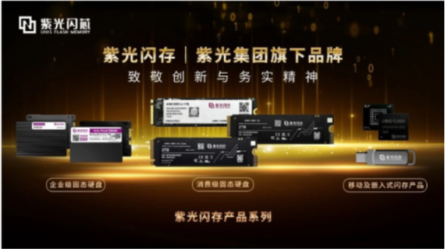 紫光闪存产品系列涵盖面向数据中心的企业级固态硬盘 UNIS Flash E1000、UNIS Flash E4000 系列;面向个人电脑市场的消费级固态硬盘 UNIS SSD L1、UNIS SSD S2、UNIS SSD S2 Ultra 系列;面向零售市场的移动闪存产品 UNIS PSSD PLS1 系列;以及面向工业级市场的嵌入式 eMMC、UFS 产品 UNIS Flash E1 及 UNIS Flash U1 系列等。