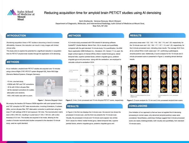 大会上, 西奈山医学院分子影像医生会议报告:基于 SupPET AI 解决方案可实现 2 分钟快速扫描, 准确、高效完成针对阿尔兹海默症的 Amyloid 头部 PET 检查
